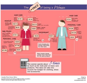 It’s such an unbelievable idea some people have to pay more for the same products just for the unique reason of being a woman. However in our society this is the reality, you only have to go to the shops and compare the prices of man’s products and woman’s products.